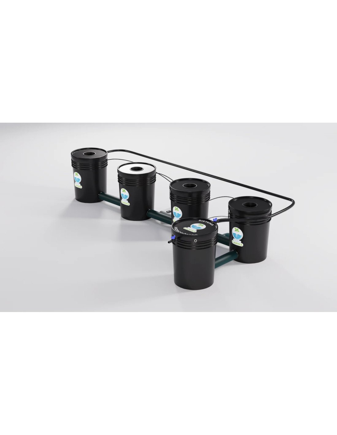 Oxigenación adecuada: incluye 1 aireador EKAN de 4 salidas más 1 aireador SOBO de 1 salida, con piedras difusoras, generando burbujas finas y uniformes en todos los baldes para mantener las raíces saludables.